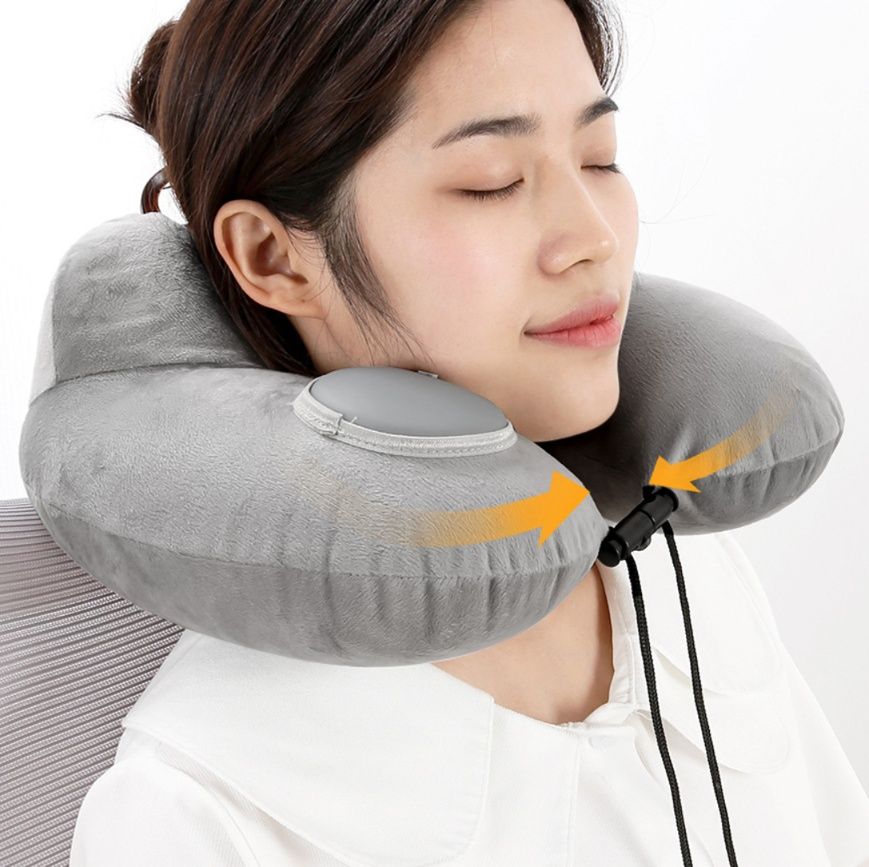手動空気入れ機能付きコンパクトな昼寝用枕で快適な首サポート
