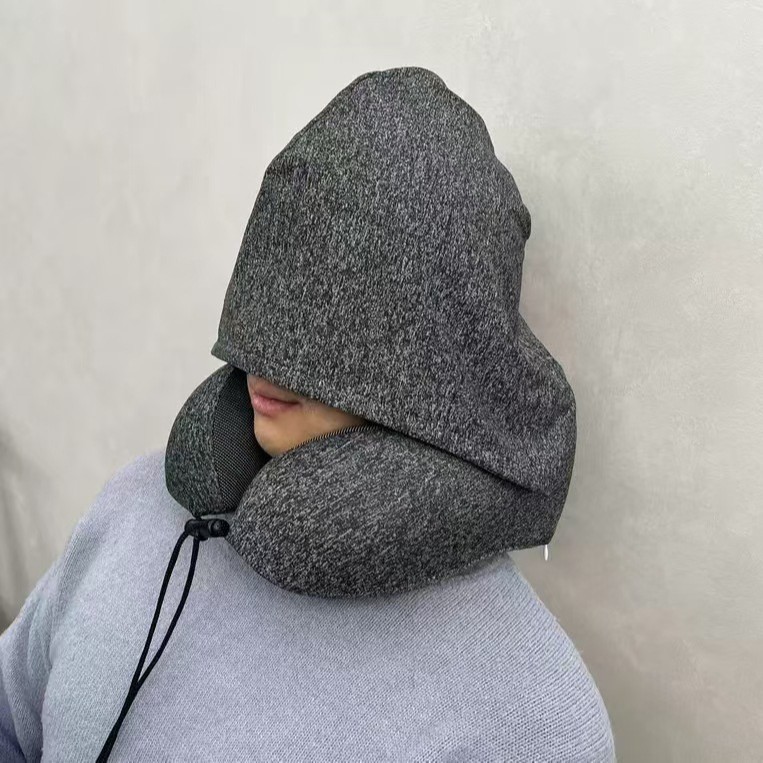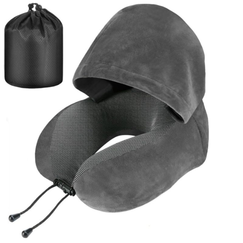 長時間の移動を快適にするフード付きのネックピローです。 首周りを優しく支える低反発素材で、頭部まで包み込むフードが光や視線を遮り、安心してお休みいただけます。 調節可能な紐で自分好みのフィット感に調整でき、耳栓とアイマスク、専用収納袋も付属しています。 飛行機や新幹線、車内での仮眠に最適な旅行の必需品です。