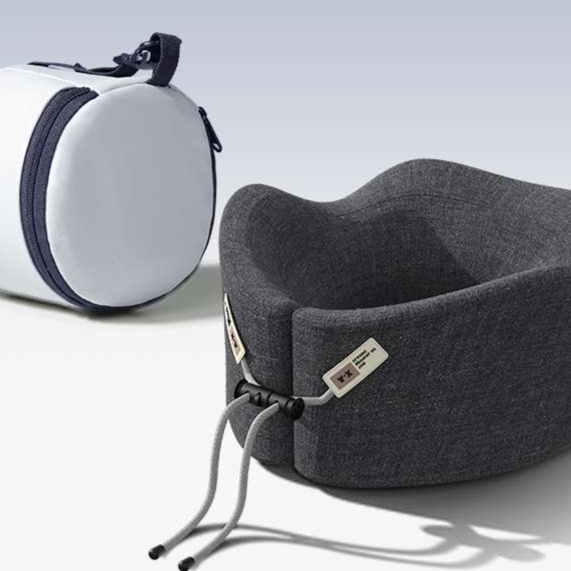 折りたたみ可能な収納ケース付きで持ち運びに便利な首用まくら。独自の二段支持構造で首をしっかり支え、快適な休息をサポート。調節可能な紐付きで、自分に合った角度に固定できる実用的な設計。
