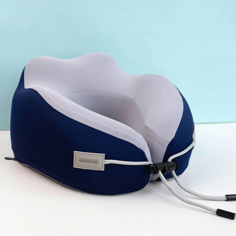 調節可能な紐付きで自分の首周りに合わせてフィット感を調整でき、飛行機や新幹線での移動に最適なネックピローです。