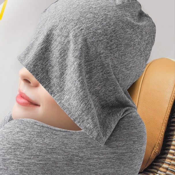 首をしっかり支えるネックピローにフード付きで光を遮り快適な睡眠をサポートします。