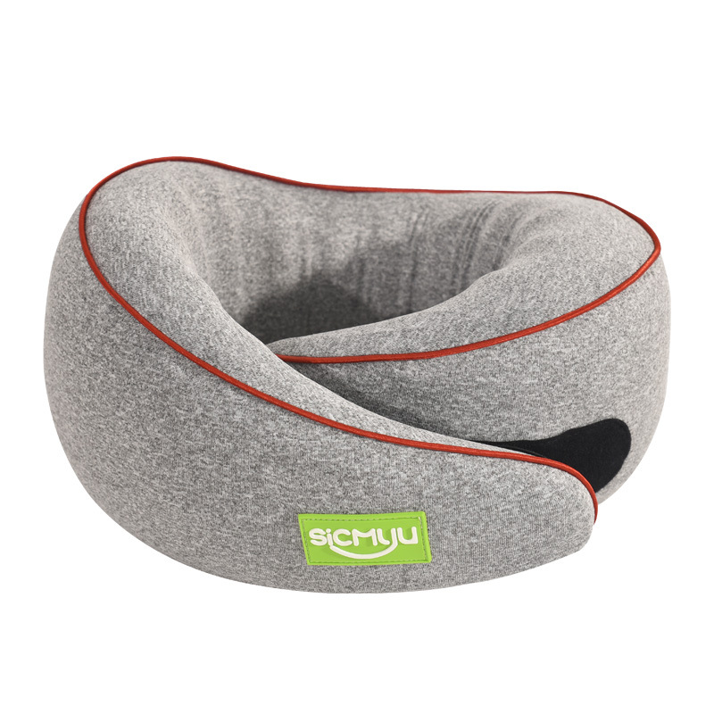 低反発素材が首の自然な曲線にフィットし、長時間の移動や休憩時の負担を軽減します。