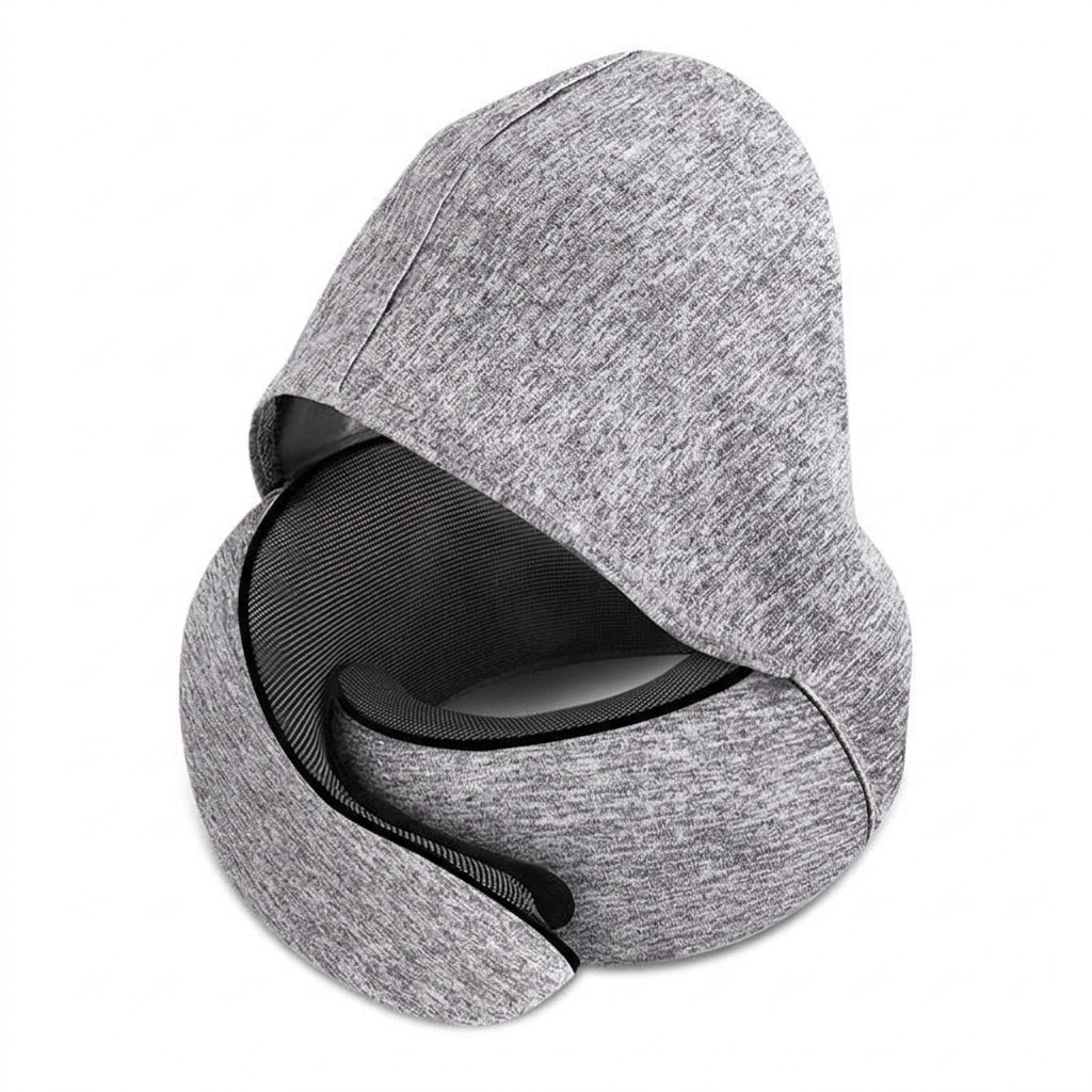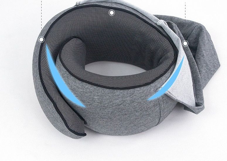 旅行や移動中の快適な睡眠をサポートするフード付きネックピローです。