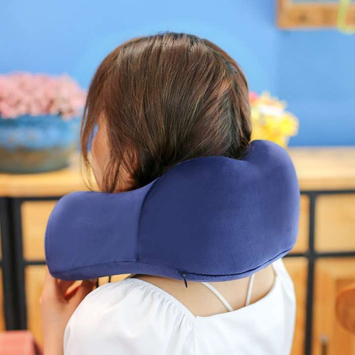 長時間の移動や仕事でも快適な姿勢をサポートする低反発素材使用の首まくら。取り外し可能なカバーで清潔に使え、コンパクトに収納できる携帯性の高い設計です。首や肩への負担を軽減し、快適な休息をお届けします。