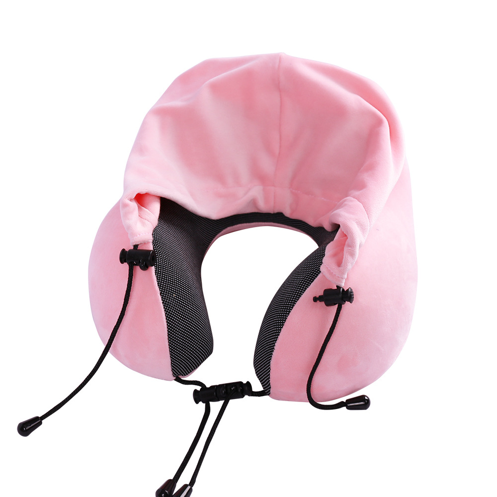 旅行や移動中の快適な睡眠をサポートするフード付きネックピローです。